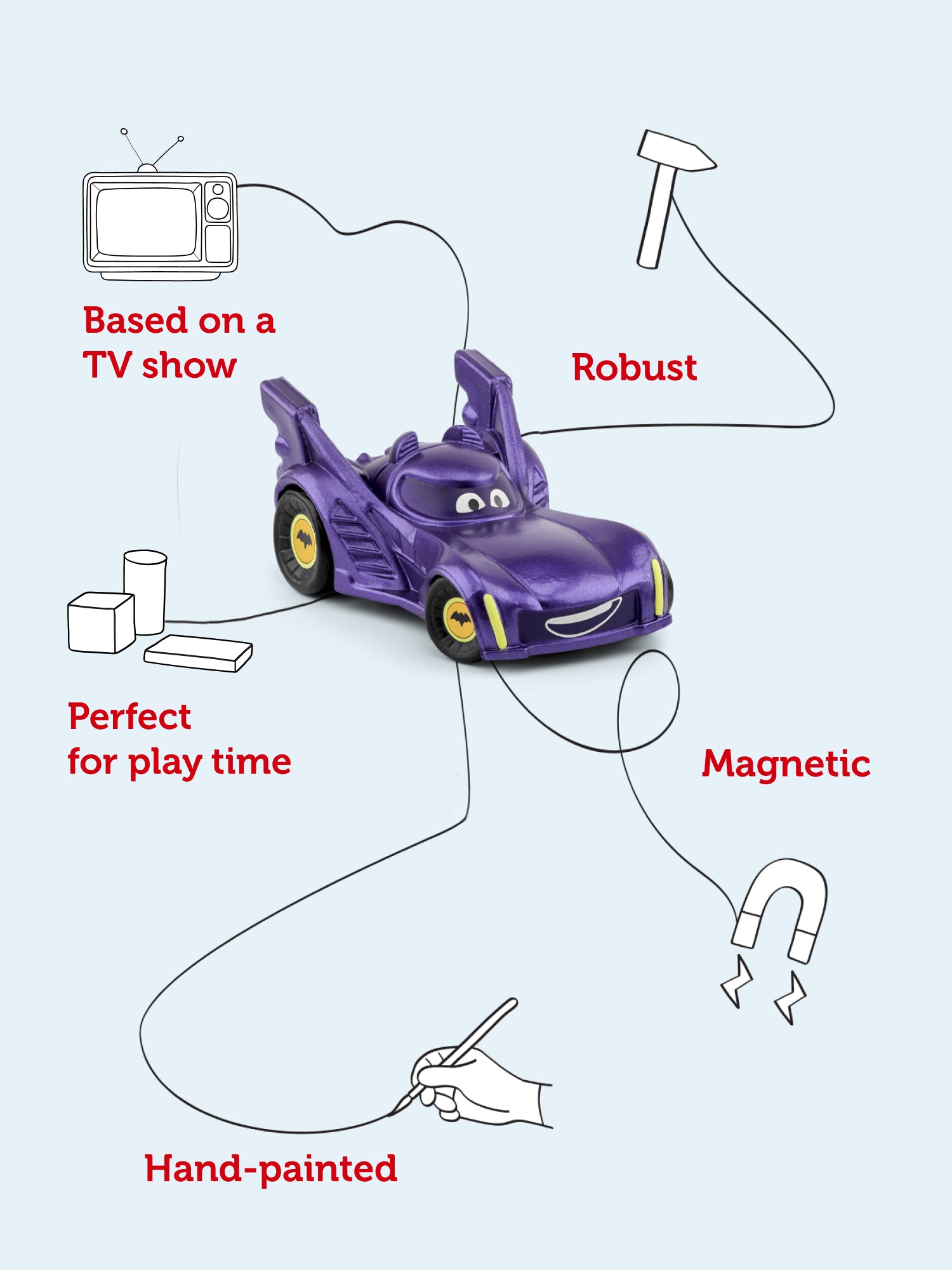 As Batman knows, even heroes need a ride – and this four wheeled fighter of crime is here to keep your little hero entertained wherever they’re headed.
