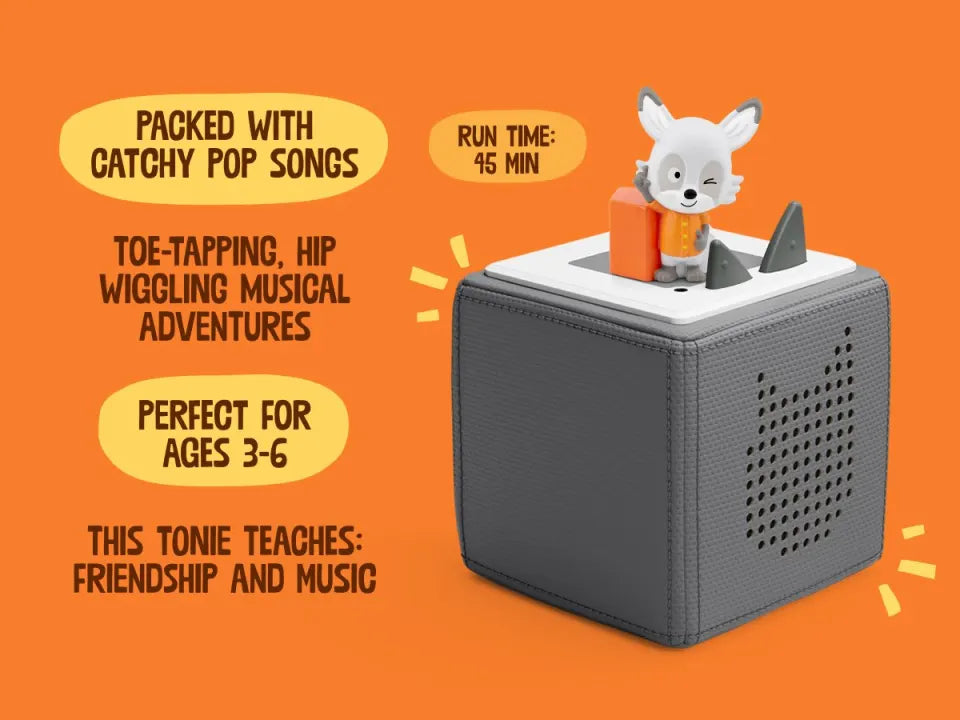 Buckle up music fans and get ready for some melodic hijinks and adventures around Bumbaloo with The Lalalinos, the best band in town. Featuring four stories, each with up to three songs woven through them, this Tonie is just the thing for little toe-tappers and hip-wigglers who la-la-love to boogie.