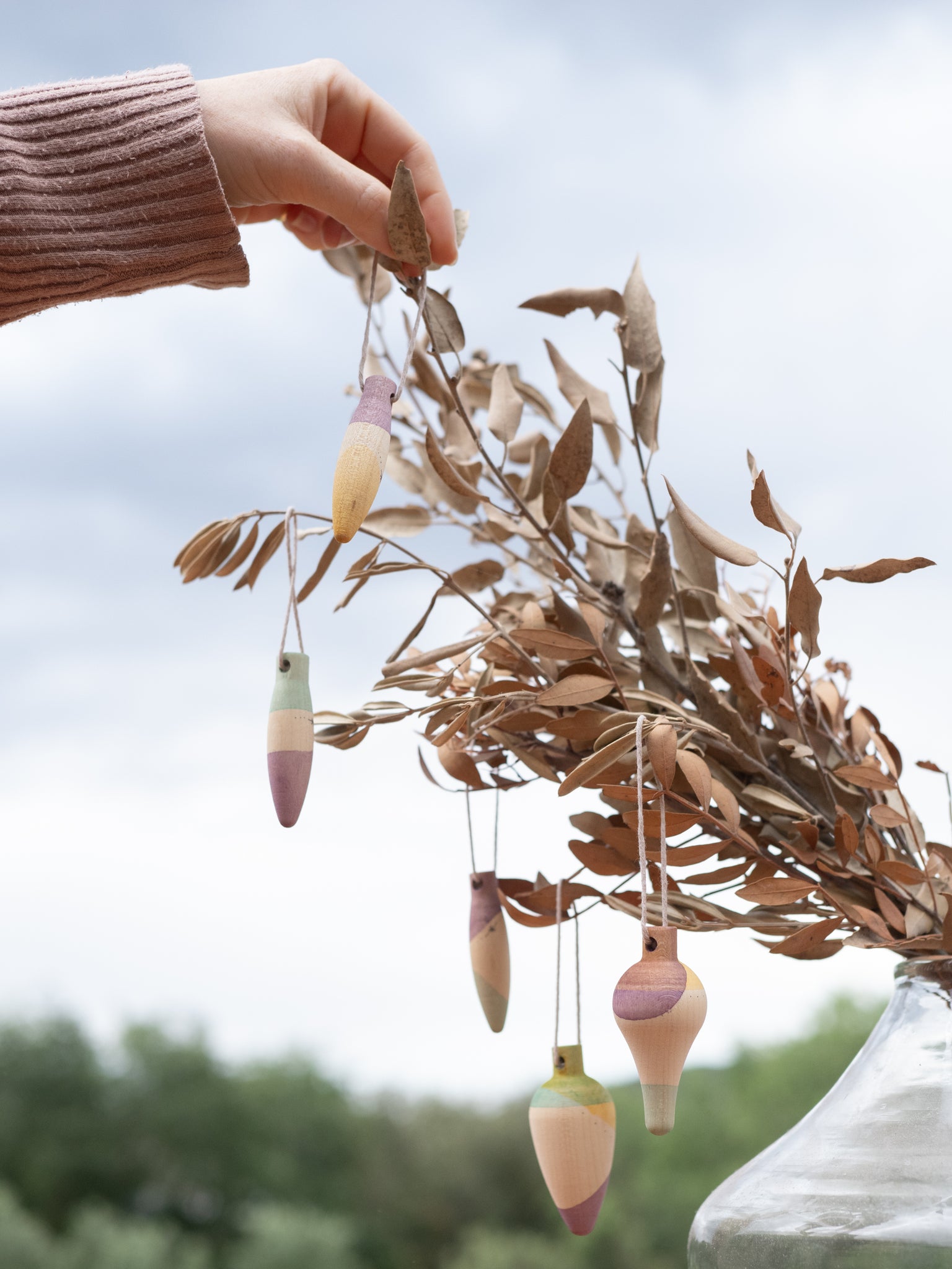 Box Nº3 contains 3 bell-shaped pieces, painted by hand (includes thread for hanging).