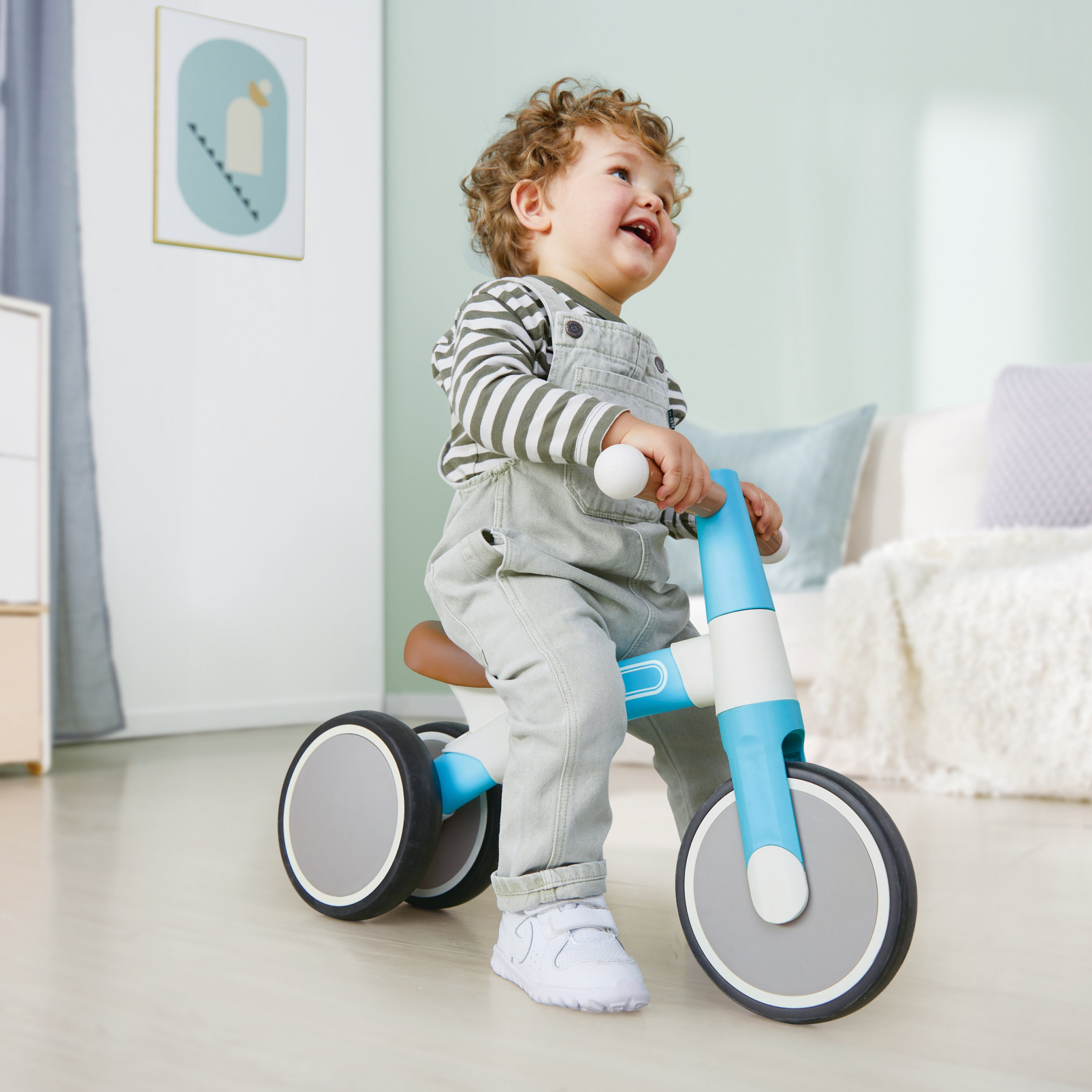 Prevent over-steering and taking tumbles with the tricycle safety feature of a 60° steering limit and two back wheels. The chunky ends on the anti-slip handles are easy to hold for tiny hands.